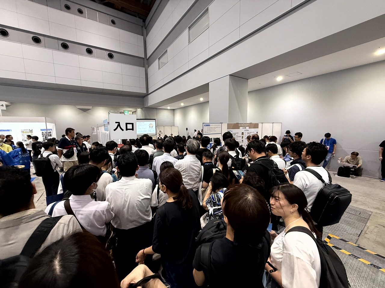 昨今の市場動向を反映してか、立ち見どころかブースの外まで人が溢れ、残念ながら入場できず…。